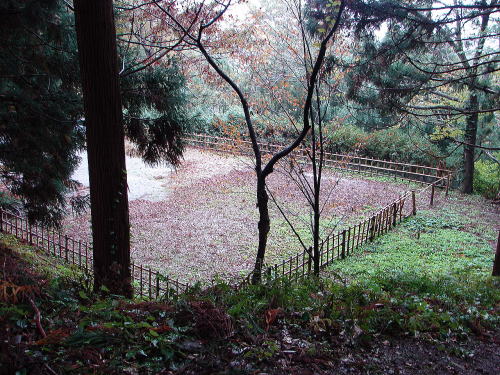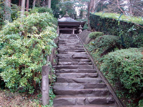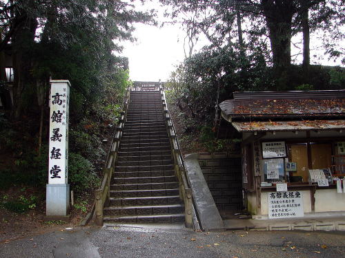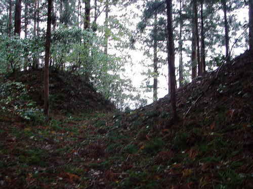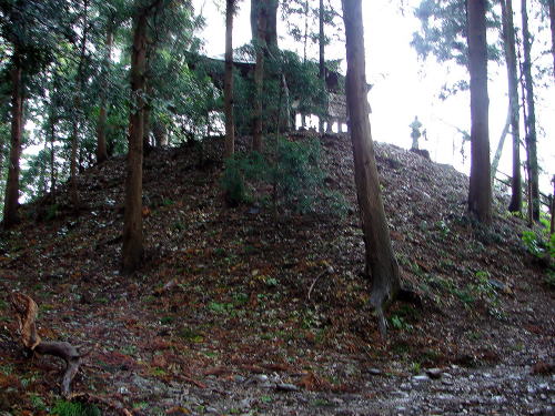 ![]() 空堀跡から義経堂(ぎけいどう)裏手を望む |