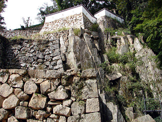 岩盤上に築かれた石垣と重層的に築きあげられた石垣。