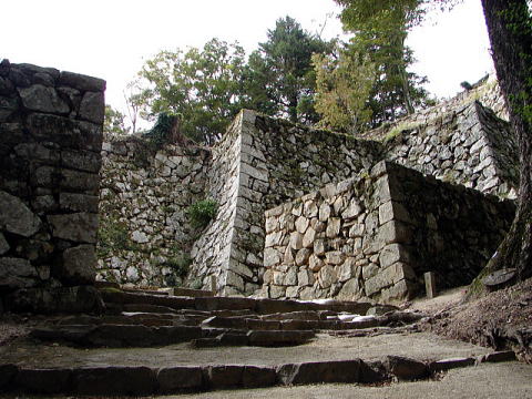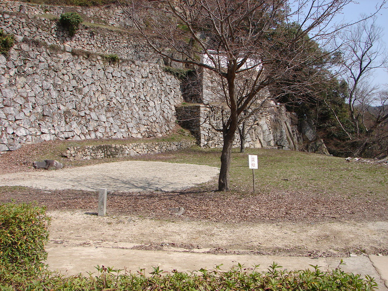 中太鼓櫓跡(中太鼓の丸跡)。ふいご峠広場から大手門に到る途中に位置する。