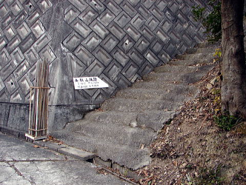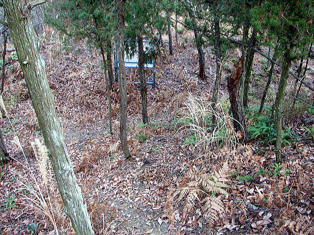 ⇒写真に写っている標識に書かれているように、ここからは曲がりくねった登城道になり、かなり急勾配の道が続く。