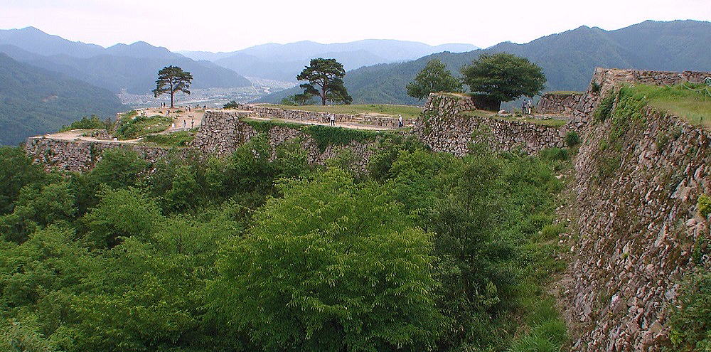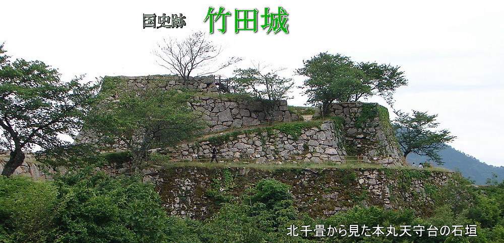 | 【歴史】 嘉吉元年(1441)、嘉吉の乱勃発後、山名氏と赤松氏の間に深刻な対立が生じていました。竹田城はこの時、赤松氏に対する山名氏の最前線基地のひとつとして築城されました。以後、太田垣氏7代にわたり城主となりますが、天正5年(1577)、羽柴(豊臣)秀吉の但馬攻めにより、羽柴秀長が城代となりました。これ以降、竹田城は織豊方の拠点城郭として機能しました。 天正8年(1580)、羽柴秀長は出石・有子山城に入り、その後、竹田城は秀長の属将・桑山重晴に預けられました。さらに、天正13年(1585)、桑山重晴が紀伊和歌山城代に転じると、赤松広秀が城主となり、数年の歳月をかけて、現在見られるような総石垣の壮大な城に修築した。広秀は、九州征討、朝鮮の役等に出役したほか、領民には産業を奨めて深く敬慕された。関ヶ原の役には西軍に属した。関ヶ原敗北後、徳川方として鳥取城を攻め、戦功をあげたにもかかわらず、城下に火を放ったことで徳川家康の忌避にふれ、鳥取真教寺において自刃し果てた。享年39歳、慶長5年10月28日のことである。城も廃城となった。昭和18年9月8日、国史跡に指定。 |