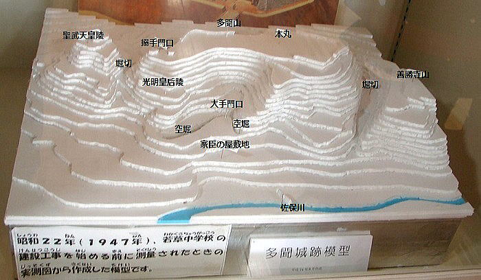 多聞城復原模型(若草公民館展示。写真に文字を追記)