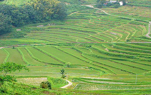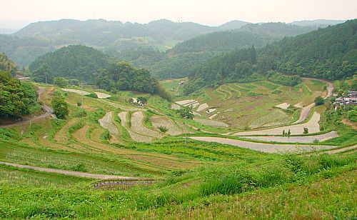 棚田とは傾斜度1/20(約3度)以上で1ha以上の水田の団地を言い、耕地が狭くあぜが多く、保全するには草刈等の多大な労力が必要です。しかし、食糧生産以外に国土・自然環境の保全、農村の美しい原風景の形成等の多面的機能を発揮しています。