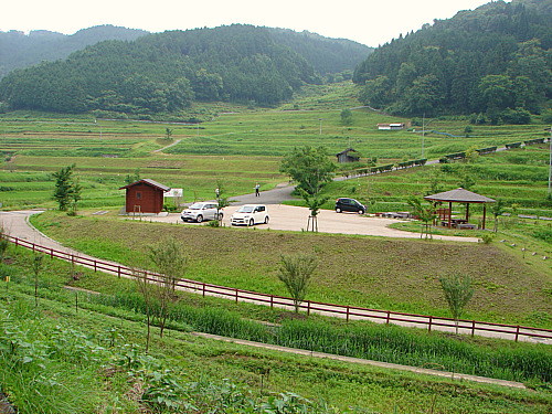 棚田のほぼ中央に設けられた棚田公園(P・WC)