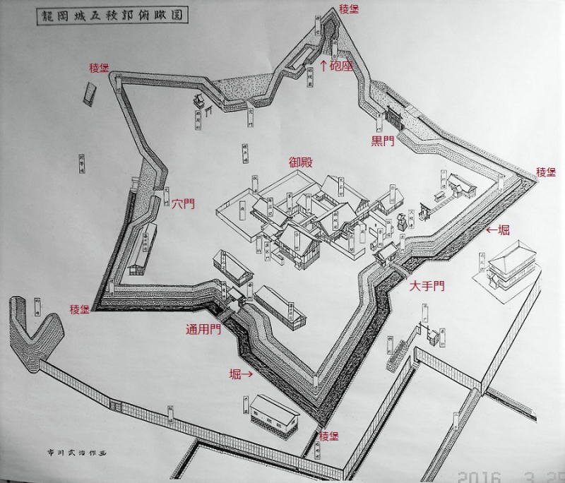 【別 称】城は乗謨自ら設計した洋式の稜堡式城郭(星形城郭)であったため、その形状から龍岡五稜郭と呼ばれている