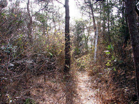 茂みの間を登って行きます。本丸への案内板が無いので、