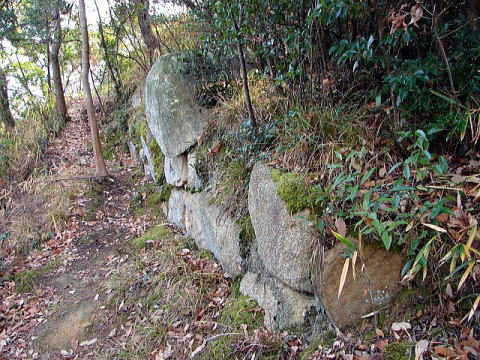 矢坂山は、花崗岩の採掘が行われ、本丸周辺の山肌は削り取られている