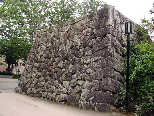 ![]() 鏡石とは、石垣の石材の中でも特に巨大な石を指し、設置目的については、城主の権力を見せつけるためなど、いくつかの理由があげられる。富山城の場合、慶長期の整備の際に据えられ、寛文期の改修の際、現状のように配置したと見られている。鏡石は、東面と北面に各2つ、西面に1つの計5つある。 |