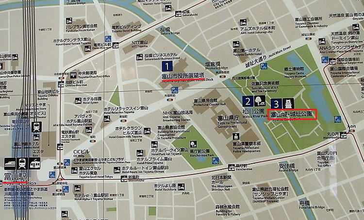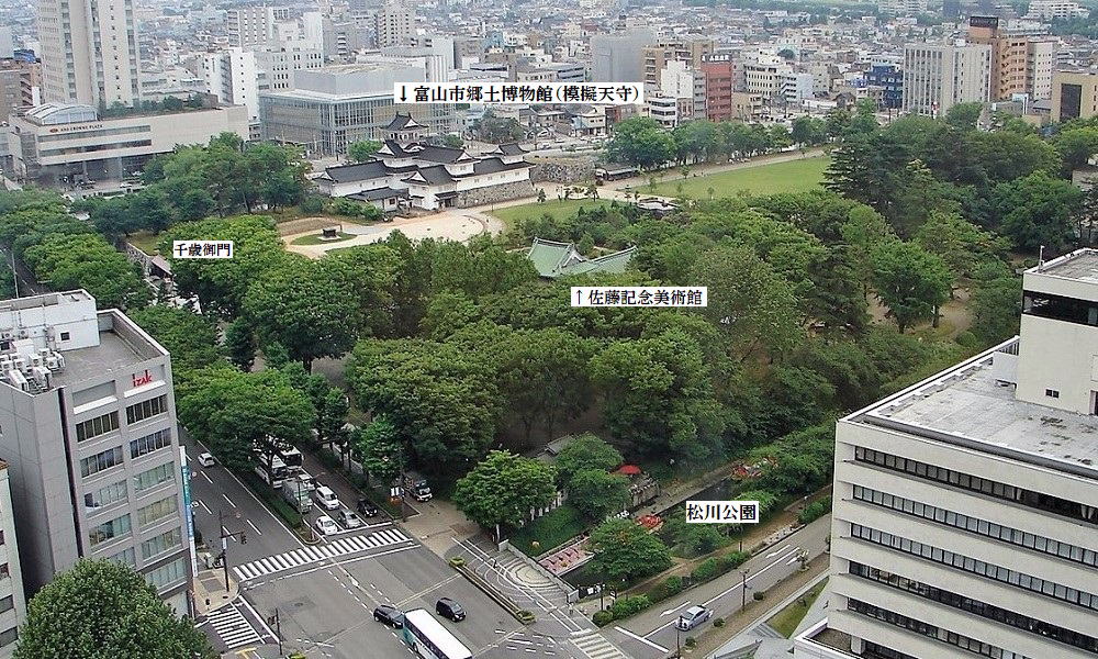 富山市役所展望塔から望む富山城・城址公園![]() |