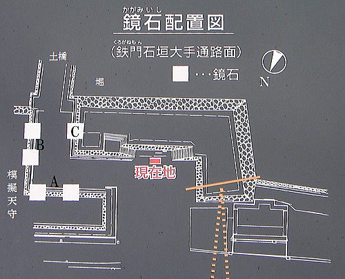 ![]() C部分の鏡石が据えられた多聞櫓石垣 |