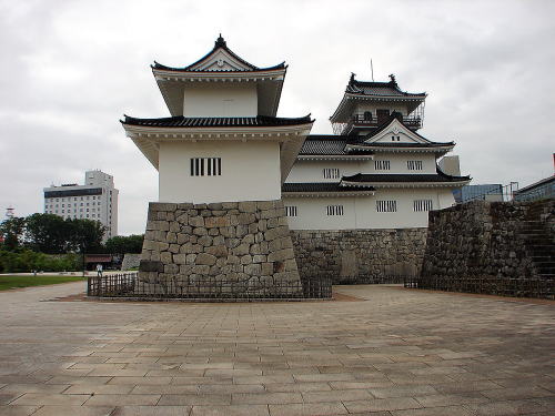 | 【歴史】 富山城は、神通川東岸の自然堤防上に築かれた。天文12年(1543)、越中東部に進出した神保長職が築城して居城とするが、永禄3年(1560)、上杉謙信に攻められ落城。その後、一時的に一向一揆が占拠するが、謙信が出陣して排除する。 天正8年(1580)、越中に侵攻した織田軍団の武将佐々成政(さっさなりまさ)が入り、柴田勝家や前田利家などとともに、上杉景勝の軍勢を越中東部に圧迫した。成政は織田信長が本能寺で倒れたあとも越中に踏みとどまり、富山城を本拠に越中を統一する。成政は富山城を織豊系統郭として大改修したと思われるが、その改修の状況は明らかでない。 天正12年(1584)の小牧・長久手の戦いに際し、成政は徳川家康と結び、羽柴(豊臣)秀吉に味方した前田利家と越中・能登・加賀の国境付近で死闘をくり広げる。天正13年(1585)には、秀吉がみずから大軍を率いて越中に侵攻し、富山城の成政を攻めた。成政は降参し、越中半国は召し上げられ、富山城は破却される。成政は天正15年(1587)、肥後(熊本県)に転封になり、越中は前田氏の領国になった。 寛永16年(1639)、前田利次が初代藩主となり、加賀藩から10万石で独立して富山藩が成立する。居城となる富山城は加賀藩時代に再興されたが、火災等で損耗が著しかったため、寛文1年(1661)、幕府の許可をえて修築が行われた。その後、富山城は富山前田家の当主が代々城主になり明治維新を迎える。富山前田家13代の居城となった富山城も明治6年(1873)に廃城。 現在、本丸南面の石垣と水堀が残り、それに沿って昭和29年(1954)に開催された富山大産業博覧会の際、戦災復興のシンボルとして模擬天守が建てられた。博覧会終了後は、富山市立郷土博物館として開館した。 (文は「小学館ウイークリーブック 真説 歴史の道」より) |