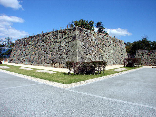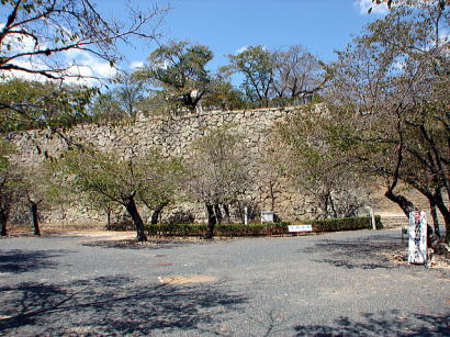 天守台かつて5重の層塔型天守がそびえていた天守台(西南側)。 手前は、多聞櫓跡。 |