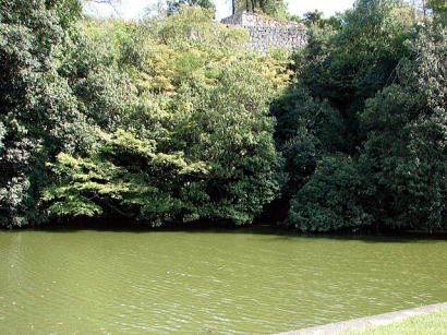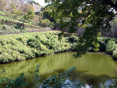 ![]() 厩濠(うまやぼり) 裏下門付近の厩濠・薬研濠は、嘉吉年間(1441〜44)の山名氏築城時の遺構と伝えられる。 |