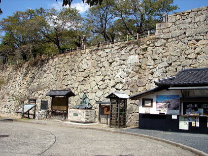 ![]() 三ノ丸への入口である冠木門横の入園切符売場 森忠政公像、城跡説明案内板などが設置。 |