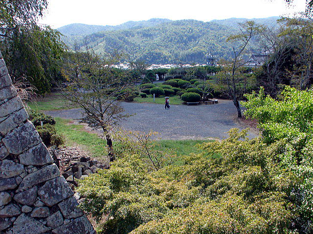▲本丸北東端にある粟積櫓跡上から望む本丸跡