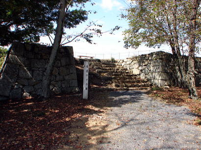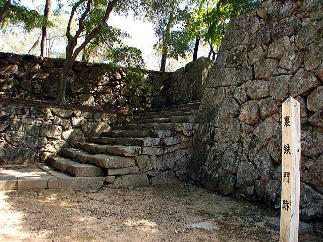 裏鉄門跡搦手から本丸への入口。南を大手(表)、北を搦手(裏)としている。 |