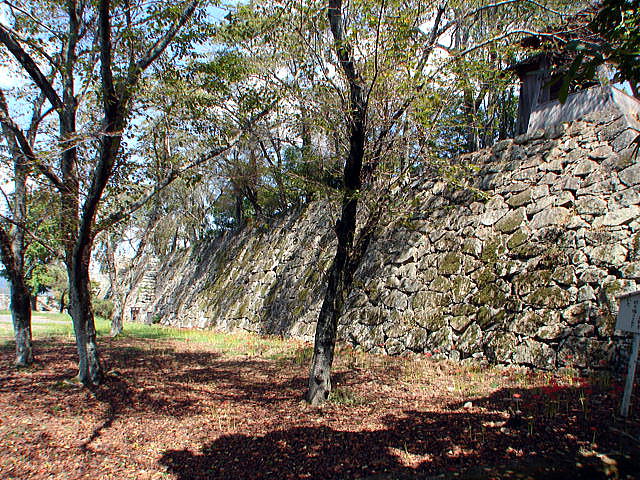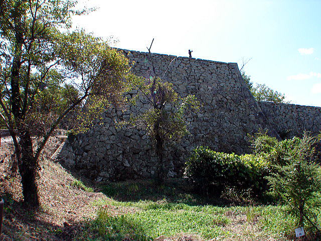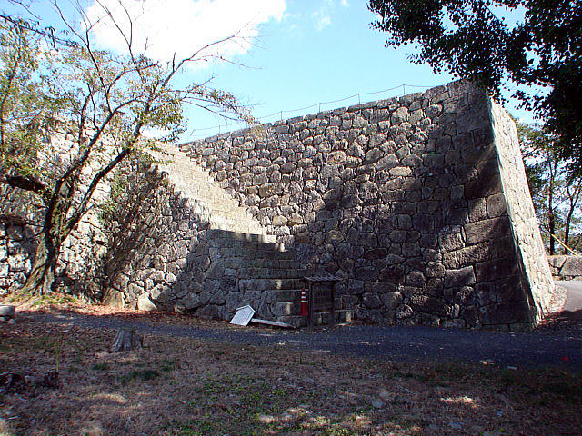 粟積櫓台石垣(城外側)俗に小天守と呼ばれた櫓で、川上村粟積山から用材を伐りだして来たのでこの名がついた。 |