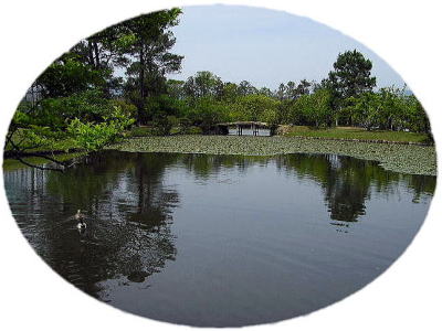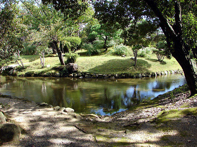 ![]() 池泉(ちせん) 池を海に見立てて、できるだけ自然にさりげなく見せている。 |