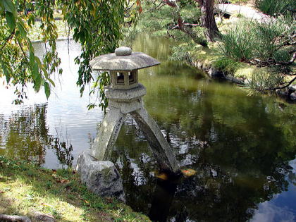 ![]() 徽軫灯籠 徽軫灯籠(ことじとうろう)は、珍しい二本の足で、足の形が琴柱(ことじ)に似ていることから名が付いたものである。 |
