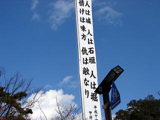 ▲「人は城、人は石垣、人は堀、情けは味方、あだは敵なり」