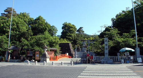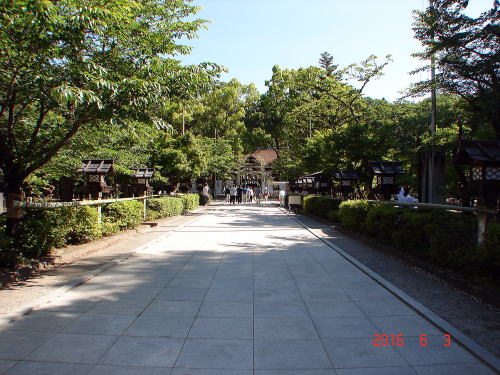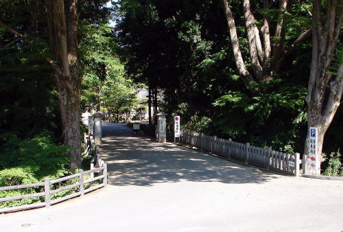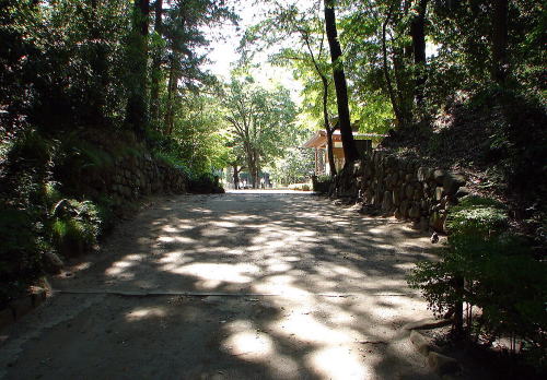 ![]() 武田神社境内 武田氏館の主郭部分で、東曲輪(参道右側部分)と中曲輪(参道左側部分)に分かれていたが、曲輪を仕切る土塁は神社造営時に取り払われた。 |