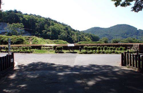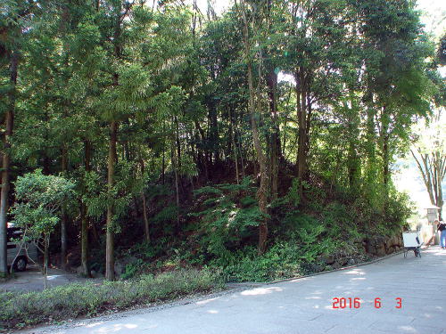 ![]() 館内から見た「大手門跡」付近の土塁 |