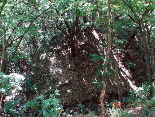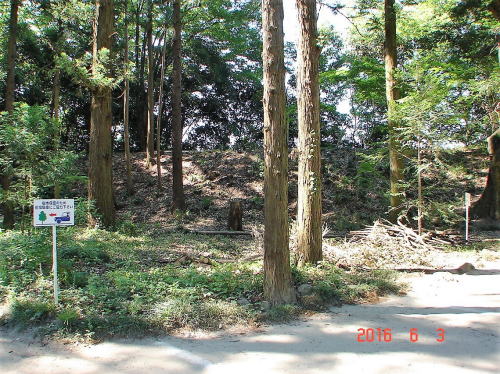 ![]() 天守台 主郭の北西側隅に築かれており、立入禁止のため、その姿をうかがうことはできない。天守台は武田氏滅亡後に、徳川麾下の武将によって築かれた。 |