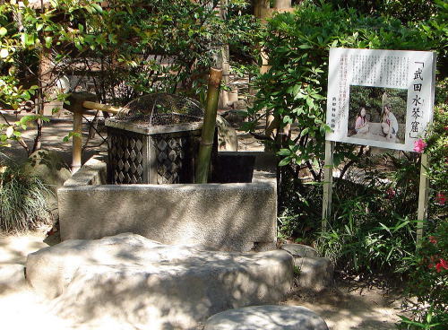 ![]() 姫の井戸のお水 「姫の井戸」は躑躅ヶ崎館の内でも其の生活の中心となる場所に有り、一説によると信玄公の御息女誕生の折、産湯に使用した事に因り「姫の井戸」と名付けられたともいわれ、また「茶之湯の井戸」とも言われる。 |