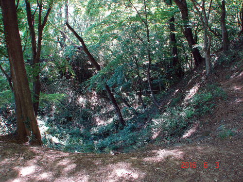 ![]() 土橋横の空堀 この北側は当初から空堀であったと考えられる。 |