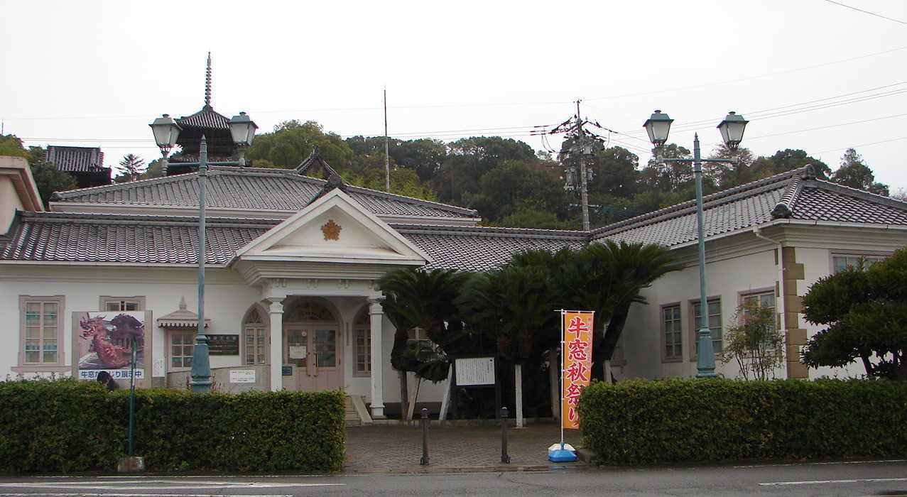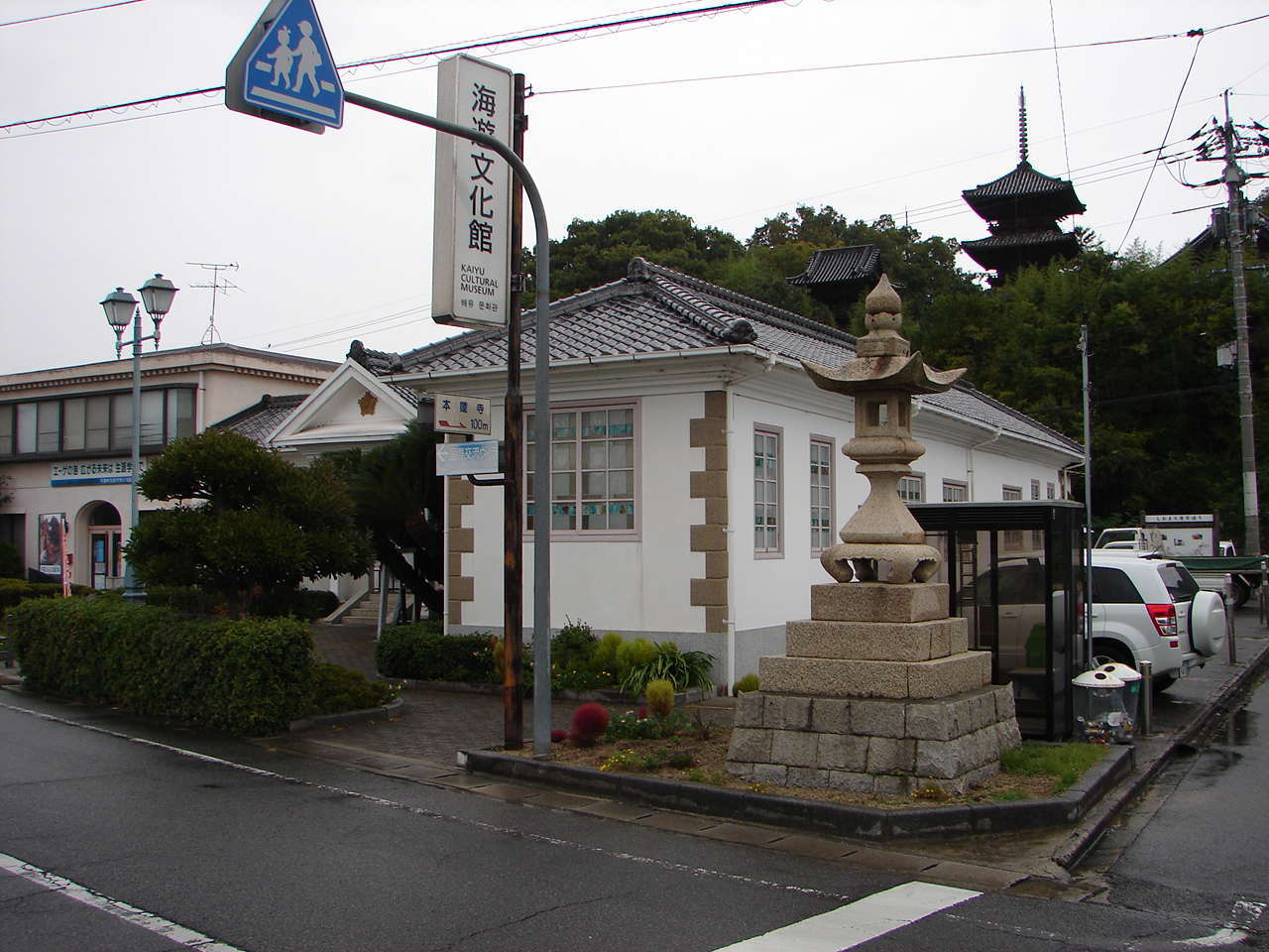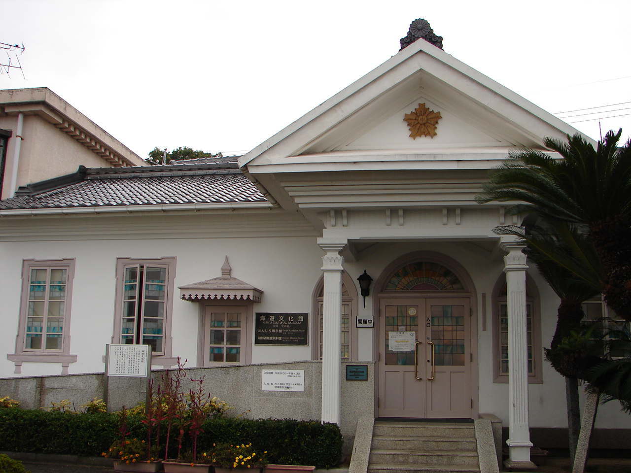 海遊文化館〜この建物は、明治20年に警察署として建設され、今は、江戸時代に寄港した朝鮮通信使の貴重な資料や市内にある県指定有形民俗文化財のだんじり等を展示する資料館になっている。また、港町として栄えた牛窓は材木の流通も盛んで、江戸時代には造船業が発達した。その技術を今に伝えるために、木造船一艘も展示している。(現地説明板より引用)