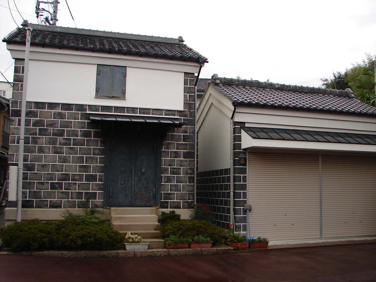 土蔵(左)と保存庫〜金庫として使用された土蔵が当時のまま残り、内部には大人数人でも動かすことが不可能な金庫が2つあり往時の様子を偲ばせている。