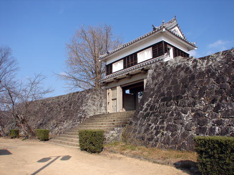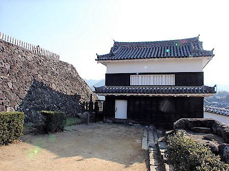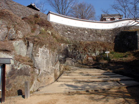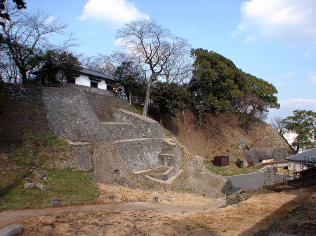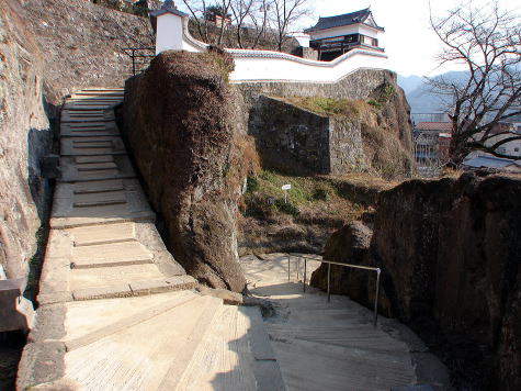 ![]() 畳櫓 鐙坂を登ったところの中門櫓跡脇に位置する。畳櫓前の石段を上がり左に折れると大門櫓へと続く。 |