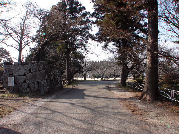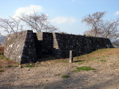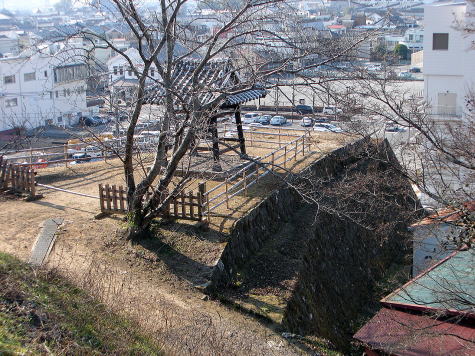 ![]() 二之丸跡から見た大門櫓(城内側) 左方には井楼櫓跡が残る。 |