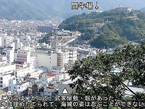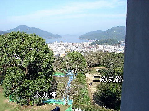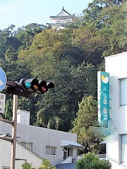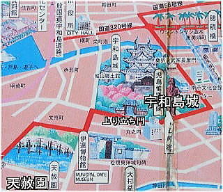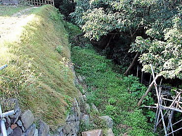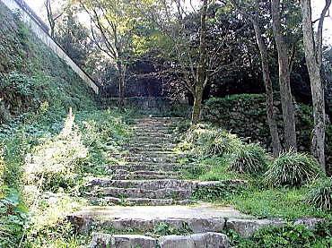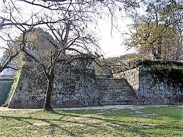 中腹にさしかかるところで、左の石垣上は、山里倉庫(宇和島市立城山郷土館)。