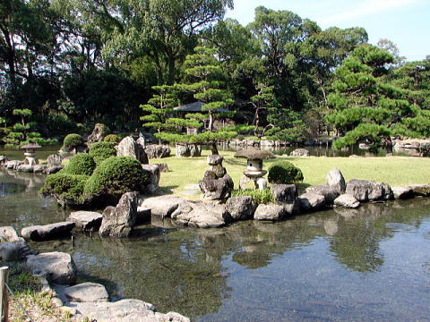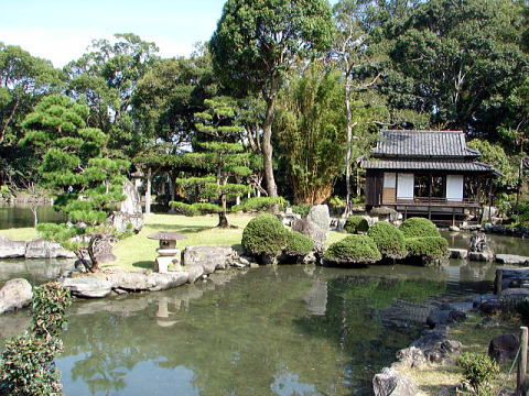 寛文12年(1672)宇和島藩2代藩主・伊達宗利が造成した浜御殿の一部南東部を、7代藩主・伊達宗紀が退隠の場所として大改造を行い、慶応2年(1866)に竣工しこれを天赦園と命名した。 |