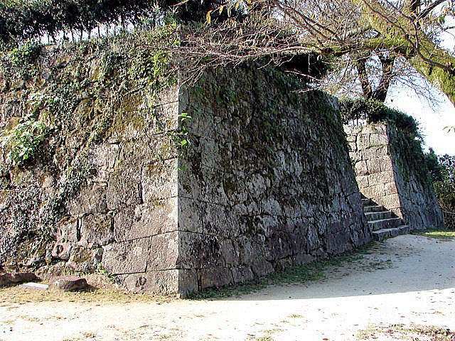 櫛形門(一の門)跡の石垣![]() 石垣はほぼ完全に残る |