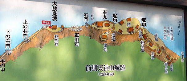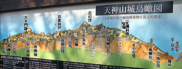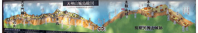上の写真(天神山城鳥瞰図では⇔部分)にある案内標識