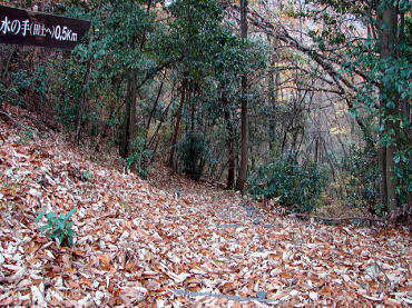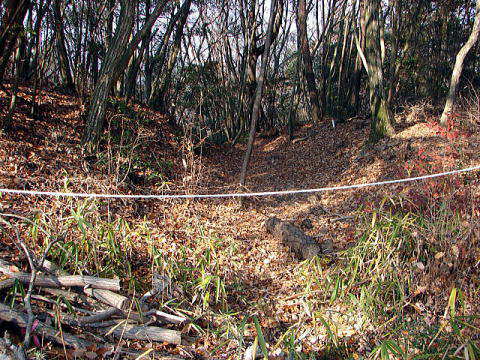 ▼水の手〜ここから徒歩約20分で、山頂の堀切に着きます。このルートは、馬越(ばがし)と呼ばれ、水の手より城中へ水を馬で運んだといわれている。