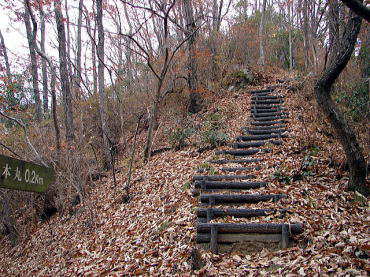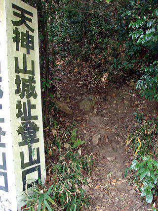 ▼城跡への登山口は数ヶ所あるが、神社そばの登山口の一つ