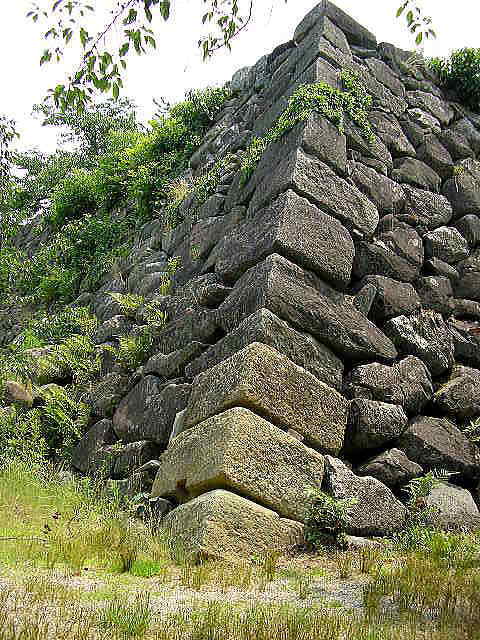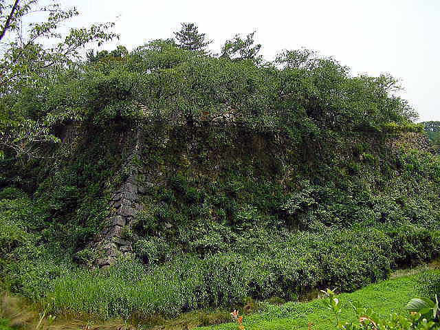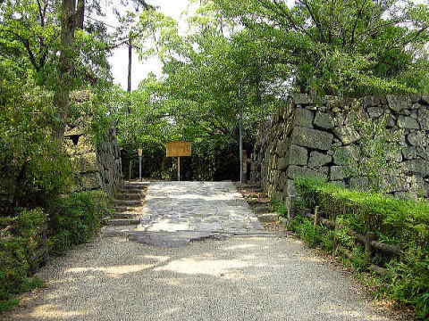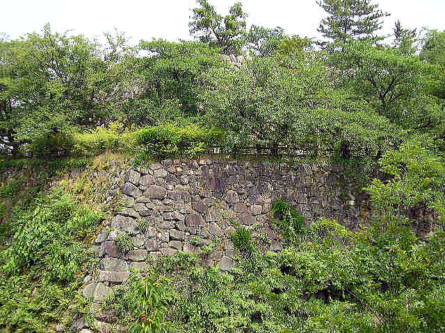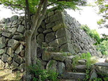 天守台、高石垣、水堀。建築物は全て解体されたが、城門が近くの永慶寺山門として移築現存。城跡一帯は、公園化されており、出入り、見学は自由 | |