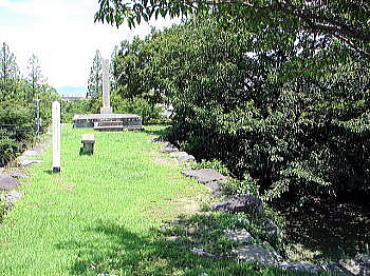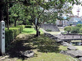 ![]() 月見櫓跡 右の橋は、後世に造られた神橋。 |