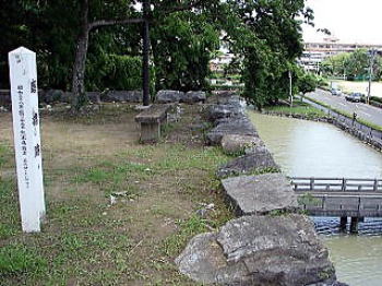 ![]() 磨櫓跡 高麗門の南側にあった平櫓。右に見える橋は欄干橋。 |