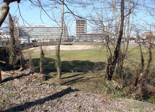 ![]() 三の丸跡 国道9号線によって分断されている飯山から、湊山、内膳丸が築かれた丸山の北側まで巡る、内堀で囲った郭。現在では、一部が野球場、ホテルなどとなっている。 |
