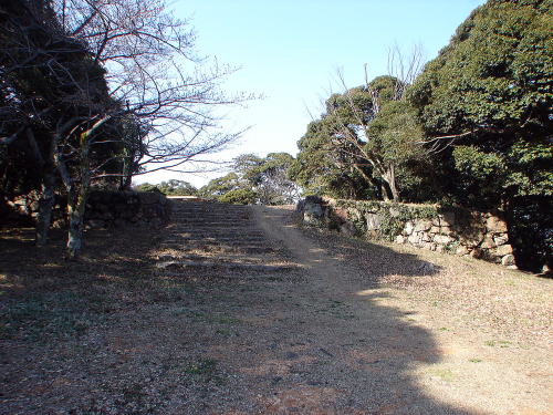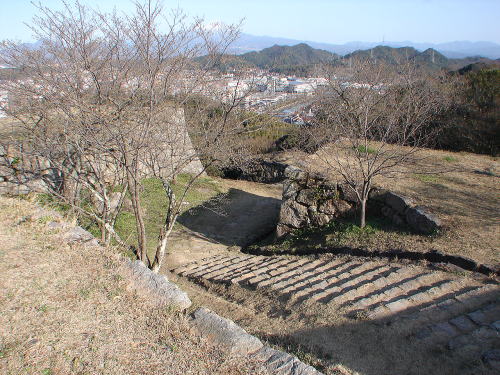 ![]() 二の丸への虎口石段上から見た枡形 |
