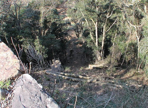 ![]() 番所跡から見た竪堀 |