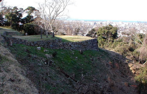 ![]() 番所郭の石垣 本丸へ至る石段を上がった左は番所が配されていた番所郭。そして右方向の眺めが右写真となります。 |
