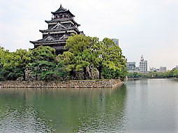 天正19年(1591)、郡山城は、輝元(1553〜1625)の広島城移転後は廃城となり、関ヶ原合戦以降取り壊された。徹底を極めた破壊にあいながら、建物跡、崩れた石垣、土塁、井戸など古城のいわれを誇る遺構が無数に横たわる。 ![]() 広島城天守 |