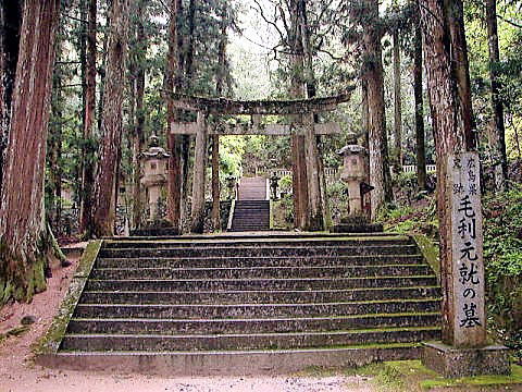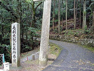 ![]() 毛利元就公墓所参道入口 鳥居をくぐり、5分くらいで墓所に着きます。 |