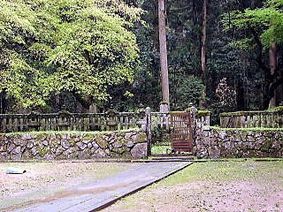 ![]() 毛利元就の墓 城の搦手に位置し、階段を登った所に元就と一族の墓があり、元就の墓は一族の墓より一段高くなっている。 |
