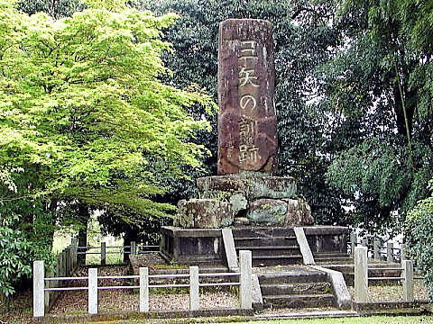![]() 「三矢の訓跡」碑 「みつやのおしえ」と読み、「旧・吉田少年自然の家」敷地内にある。元就が死に臨んで語った「一本の矢はたやすく折れるが、束ねた矢は折れない」という有名な伝説。元就は隆元・元春・隆景に難局を乗り切るには3人の協力が必要という「教訓状」をしたためている。 三子に与えた共同一致の教訓状から、旧大江中学校生徒会が御里屋敷跡に建立したものです。 |